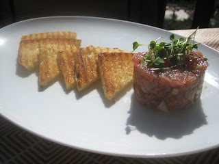 Auberge du Soleil is a luxurious hotel/restaurant that sits atop of a large hill off the Silverado Trail that overlooks Napa Valley. Like The French Laundry, it is also a part of Relais & Chateaux (an organization that selectively chooses hotels and restaurants based on high standards of luxury and fine French cuisine). To forgo the $125 tasting menu, we opted to dine at the bar (open from 11AM-11PM) instead. The view is just as nice as the main restaurant and the service was great. We sat on the balcony overlooking the vineyards of Napa Valley.