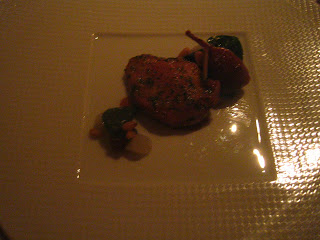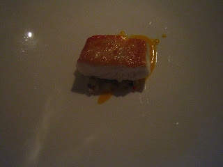 After the sparkling, we had the 2007 Calera Viognier (Mt. Harlan, $45). Great body, elegant, with nice aromatics and the alcohol did not overpower the food.