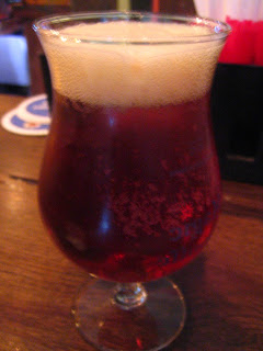 This was red in color with a slight sweet, spicy note, light carbonation, with dried fruit, and an aromatic nose. A lot of alcohol (about 13.5% ABV) but the subtle oak on the finish was nice.