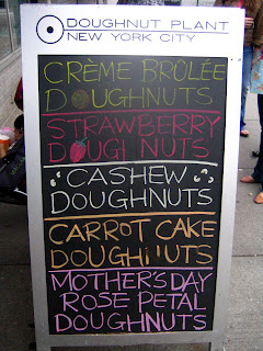 We love doughnuts and have been very anxious to visit Doughnut Plant on the Lower East Side. Finally, someone has elevated the doughnut from a mere coffee shop second thought into a creative and tasty art form. The doughnuts here are all natural, with no preservatives and no eggs. After introducing these creations to a friend of ours, she emphatically proclaimed that the carrot cake doughnut was the most wonderful thing in the world!