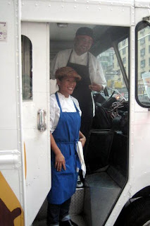 After running out of food at 1pm, Lee Anne Wong and the rest of the DT/KOGI team are still all smiles. Next stop, tonight's $600/person charity event at Rockefeller Center.