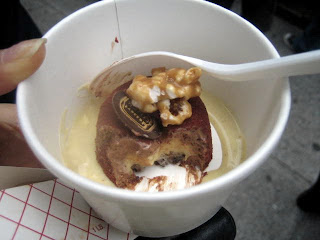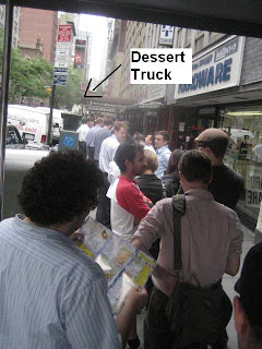 The line stretched from Lexington Ave to 3rd Ave, with only 200 people lucky enough to get their $4 combo of Kogi's Kimchi Quesadillas with Dessert Truck's Chocolate mousse with Peanut Butter centre. All proceeds were donated to Citymeals-on-Wheels.