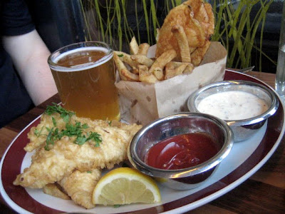 Pub Fish and Chips ($14): Lightly battered white fish with crispy hand-cut chips. It was served with a homemade tartar sauce and a 8oz glass of the seasonal special Brooklyn Cuvee de Cardoz.