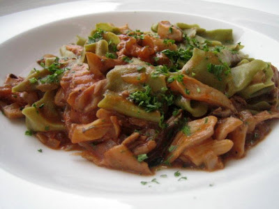 Soft shell crab with sausage, asparagus, and tomatoes in a cream sauce ($15): The crab was tasty and the sauce was very rich. It was not very filling, so we were glad we split this as an appetizer. The house-made pastas were a better choice for our entrees.