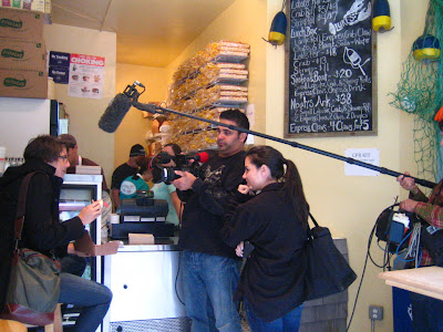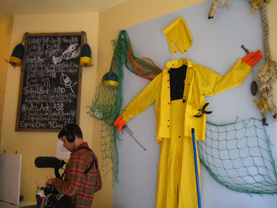 Luke's Lobster's very first customer (who coincidentally was originally from Maine) being interviewed by the camera crew.