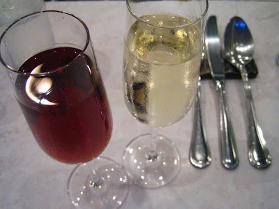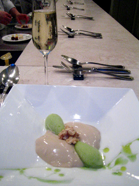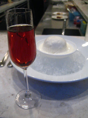 Of course we opted for the wine pairing! At left was the sweet Alvear Pedro Ximenez 2004 and at right was the fizzy Moscato d'Asti, La Spinetta 2007.