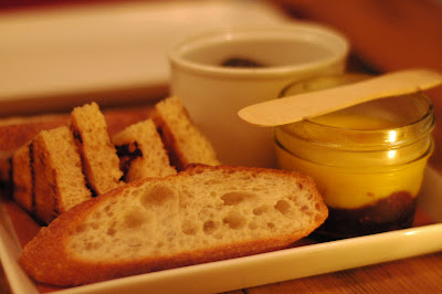 We could not resist getting the $9 pate. The Foie Gras Terrine had black mission figs and apricots in it and came with cornichons and toast. How could you not like foie gras in a jar like this!