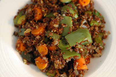 Amongst our purchases was a bag of red quinoa. Quinoa is an edible seed that is full of protein. It has less carbohydrates than rice and, when cooked, has a light, fluffy texture that makes it a good substitute for couscous or rice.