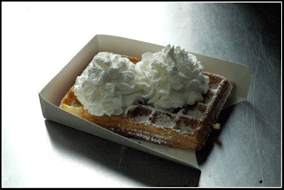 My favorite was the Brussels Wafel with whipped cream and powdered sugar. The Brussels is the larger waffle. It was so light, yet crispy.
