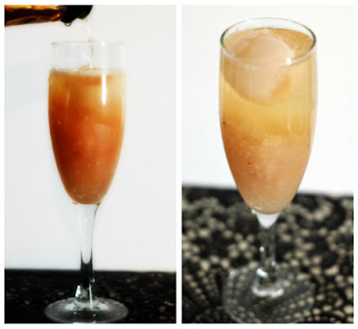 After saving a couple of lychee fruit for garnish, I mixed up one 20oz can of lychees in syrup (including both lychee fruit and syrup), 1/2 cup PAMA pomegranate liqueur, and 1 cup sparkling wine or champagne (I used the Spanish cava, Cristalino) using a hand mixer. I added the mixture to my ice cream maker, then chilled it in the freezer for a couple of hours.