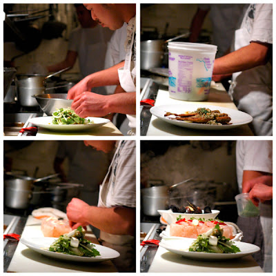 Our table was right beside the open kitchen. So after ordering, we just watched the action. Ooh - that sashimi on the pretty pink salt rock looked really good...