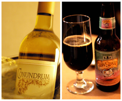 We brought along our last bottle of the 2007 Conundrum from Caymus (that thankfully survived the trek from NYC to Philly). This wine is a blend that usually combines sauvignon blanc, muscat canelli, chardonnay and viognier and possibly other varietals (the actual blend changes year to year, hence the name Conundrum). This was a great match, as the wine still had good acidity, ripe melon and the weight to match the rich seafood dishes.
