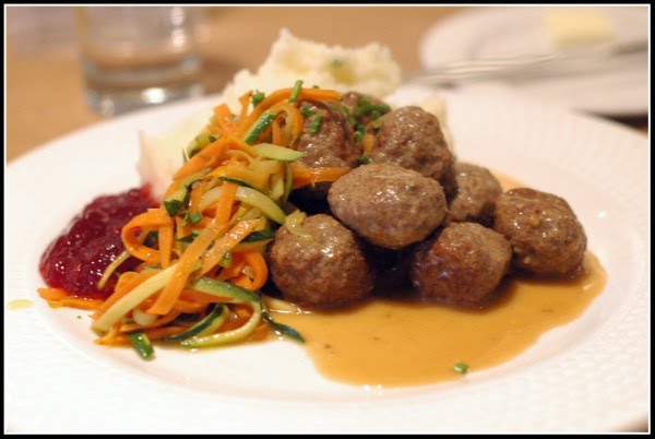 Christine chose the Swedish Meatballs with lingonberries, mashed potatoes, and a carrot/zucchini medley. It looked like the most substantial and tasty dish on the menu.