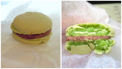 We purchased two more macarons ($1.95 each) - Cognac (a St. Patrick's Day idea) and Black Sesame (Cecile was inspired by a black sesame ice cream she enjoyed at a Japanese restaurant and chatted with that chef for ways to incorporate the same flavor in her macaron).