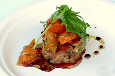Another favorite was Melissa Perello's, of Frances in SF, Suckling pig with summer fruit mostarda. The pork was juicy and we loved the sweetness of the seasonal peaches. My husband said he'd be happy eating this moist pork dish all the time if he could. This was another dish we returned to have again and by the end of the night, the line was so long it snaked around like a snail's shell.