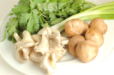 I added the noodles to the broth and tofu, along with sliced Shiitake Mushrooms, sliced Oyster Mushrooms, Cilantro, Spring Onion, Spinach, and ground Black Pepper.