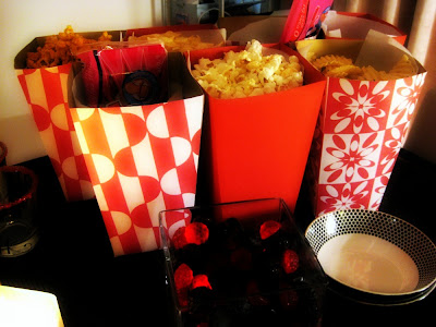Don't you love these popcorn containers she made with red and white cardstock? I'm not sure which template she used, but you can easily search online for a free template.