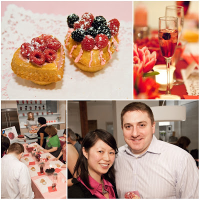 Recently, my husband and I were treated to a pre-Valentine's date (with 40 other people!) courtesy of Driscoll's (the berry people) and Chambord (the raspberry liqueur people). Cathy Riva, a celebrity party planner, guided us all through a 3D cupcake decorating session. Usually the thought of decorating cupcakes (especially in heart form) would send my husband running the other way, but complimentary drinks and good company (Jackie from The Diva That Ate NY and Marc from No Recipes were also there) enticed him to come.