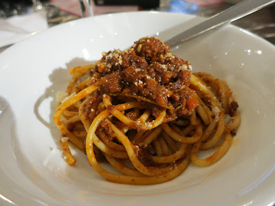 7. Drain the pasta and add to the pot with the remaining ragu. Stir or toss the pasta to coat with the sauce. Add some of the reserved sauce, if needed, to make it about an even ratio between pasta and sauce. Add the reserved pasta cooking water and cook the pasta and sauce together over a medium heat until the water has reduced. Turn off the heat and give a big sprinkle of Parmigiano and a generous drizzle of the high quality finishing olive oil. Toss or stir vigorously. Divide the pasta and sauce into serving bowls or 1 big pasta bowl. Top with remaining grated Parmigiano. Serve immediately.