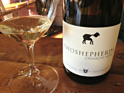 The tasting lineup included: Grenache Blanc (which is rare on its own in France, let alone CA); Viognier (very floral and aromatic); Pastoral Blanc (balanced, white Rhone blend); and a Grenache-dominated red blend (GSM for 2010 vintage). All display the winery's approach of minimal intervention to create crisp, high acid food friendly wines. Two Shepherds wines are aged in neutral oak to help with the texture of the wine without being dominated by the oak treatment. The wines have also received some good press recently. The only downside is that the pricing is fair and the production is so small, so the wines are going fast.